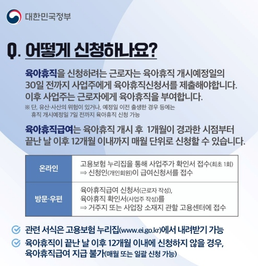 이렇게 육아휴직은 부모님들에게 많은 혜택을 주는데요, 꼭 필요한 경우에는 신청을 하여 가족과의 소중한 시간을 함께 보내보세요.